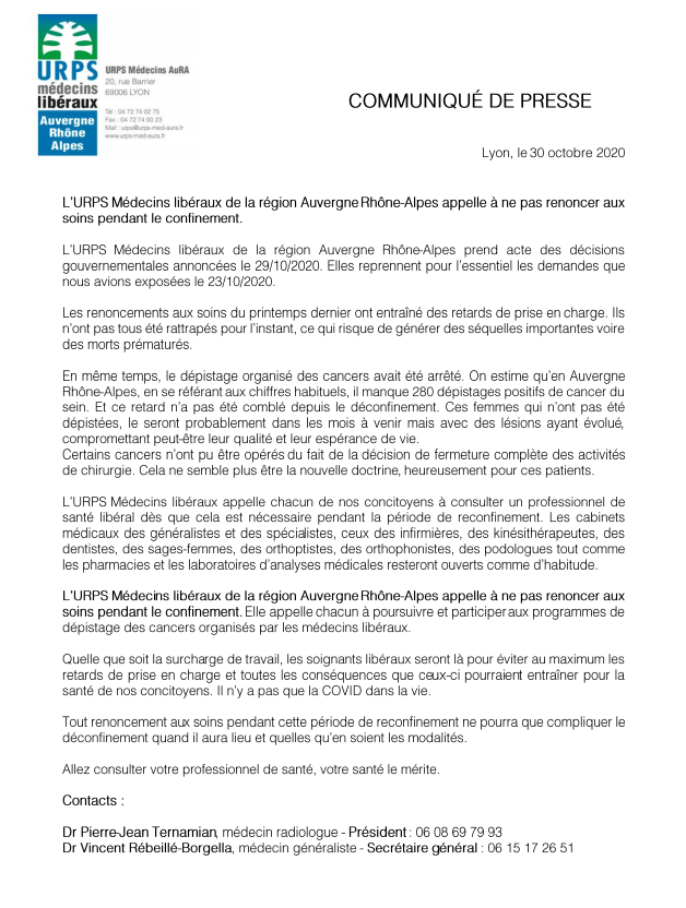 Consultez ici le communiqué de presse de l’URPS Médecins AuRA (télécharger)