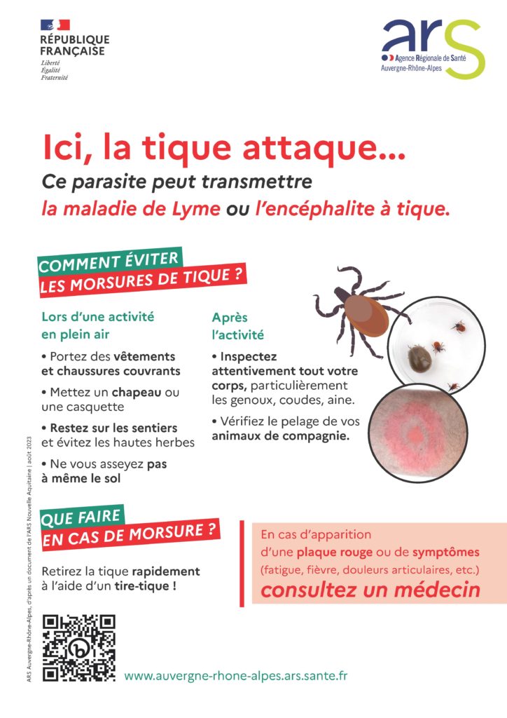 L’ARS Auvergne-Rhône-Alpes invite les professionnels de santé à rappeler à leurs patients les gestes à adopter en prévention et les démarches à suivre en cas de morsure et d’apparition de symptômes. Un kit de communication est à votre disposition, contenant une affiche A3, un flyer A4 et des vignettes réseaux sociaux. Ils sont également téléchargeables depuis le site de l’ARS.