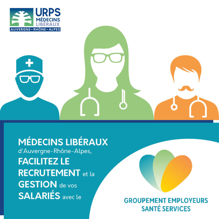 L’URPS Médecins Libéraux AuRA étant adhérente du Groupement Employeurs Santé Services, tous les médecins libéraux de la région peuvent faire appel à ses services. Il vous suffit de vous inscrire sur le site dédié (bouton « Se connecter ») ou d’envoyer un mail à l’adresse rh.aura@ge-santeservices.org en faisant part de vos besoins en recrutement ou gestion de personnel. Le Groupement Employeurs Santé Services vous proposera alors une offre sur-mesure.
