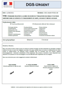 DGS – Obligation vaccinale et pass sanitaire (consignes) ?
