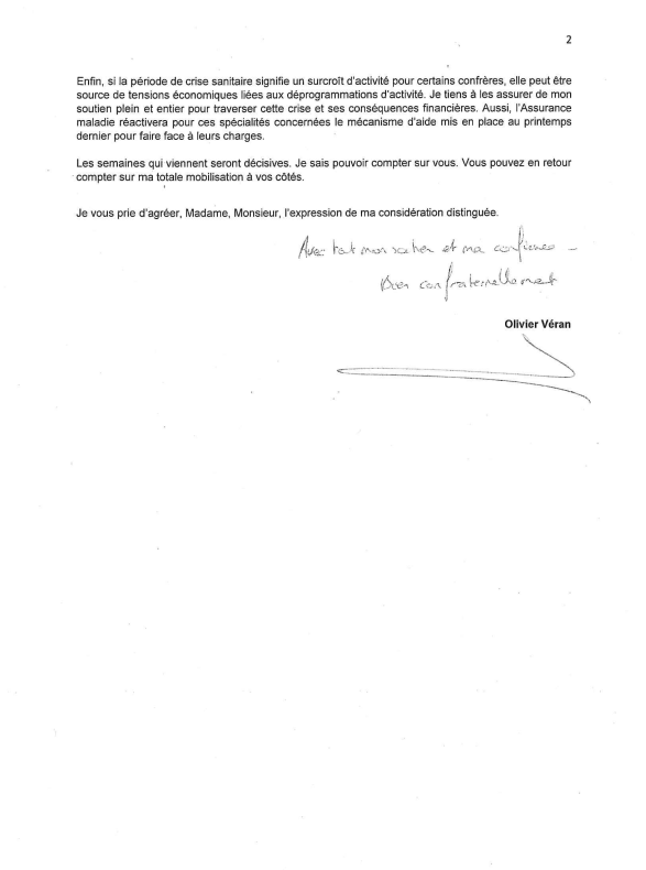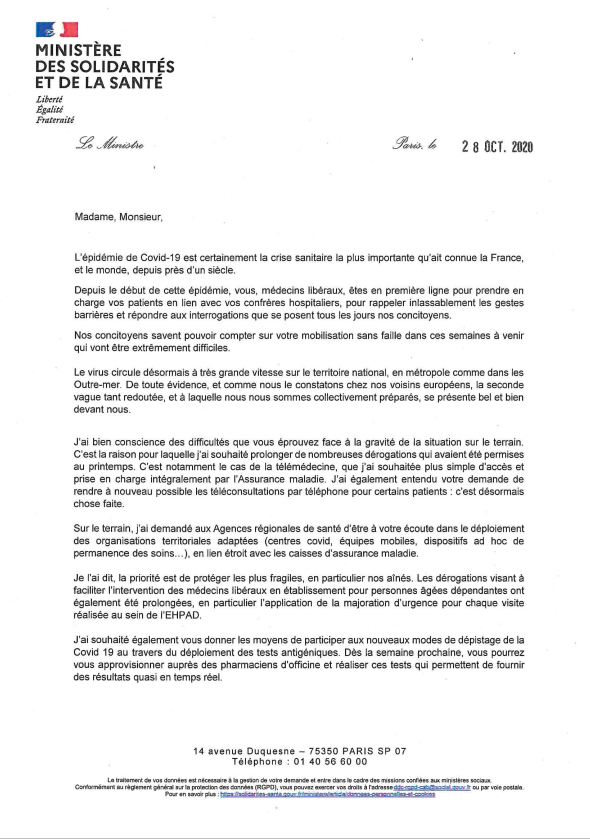 Monsieur Olivier Véran, Ministre des Solidarités et de la Santé, s’adresse aux Médecins Libéraux.