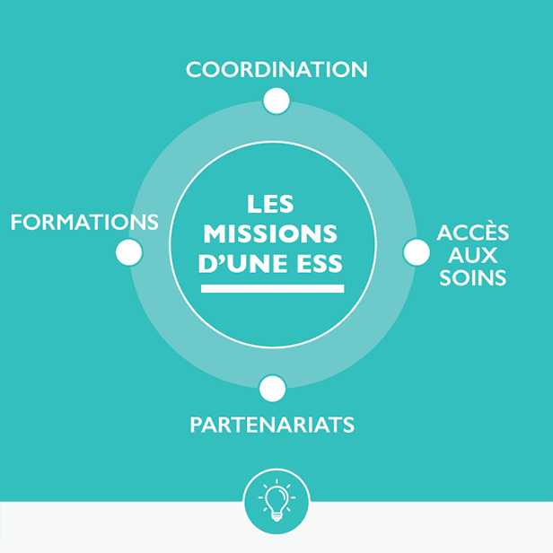 L’ESS vient compléter les dispositifs déjà existants en matière de coordination de l’offre de soins sur les territoires (Equipes de Soins Primaires, Maison de Santé Pluriprofessionnelle, Centres de Santé, Communautés Professionnelles Territoriales de Santé, etc.)