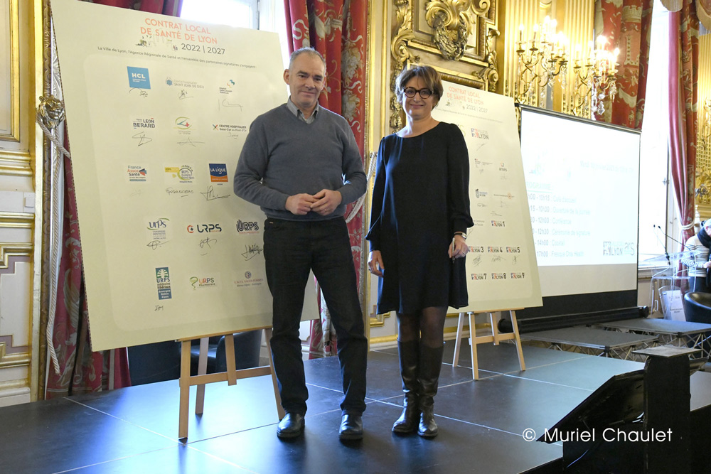 Sous l’autorité de la Ville de Lyon et de l’Agence régionale de santé (ARS) Auvergne-Rhône-Alpes, le tout nouveau Contrat Local de Santé vient d’être signé ce mardi 10 janvier par 35 acteurs engagés pour la santé des Lyonnaises et Lyonnais. Pour l’URPS Médecins Libéraux AuRA, sa présidente Sylvie FILLEY-BERNARD, a rappelé durant son intervention l’engagement total des membres de l’URPS dans les actions à mettre en œuvre. Cet engagement s’inscrit dès l’origine dans la démarche innovante de concertation, de réflexion collaborative et de co-construction du CLS. Elle a dans le même temps dit sa satisfaction de voir partagée une même vision de la santé, plus globale, telle que la définit l’OMS sous le terme « Une Seule Santé » (One Health). Le CLS 2022-2027 finalement construit constitue bel et bien la pierre angulaire d’une future meilleure santé collective.