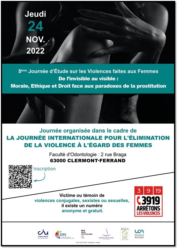 Le jeudi 24 novembre 2022 aura lieu, dans le cadre de la Journée Internationale pour l’Elimination de la Violence à l’égard des Femmes, la 5ème Journée d’Etude sur les Violences faites aux Femmes.